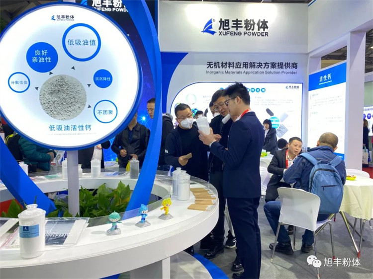旭豐粉體本次展會依然充滿“新”意,以穩(wěn)重藍(lán)為主色調(diào),展位造型簡約不失大氣,設(shè)有直觀的產(chǎn)品展示區(qū),并以專業(yè)的知識和服務(wù),吸引了行業(yè)大咖駐足參觀和互動(dòng)交流!